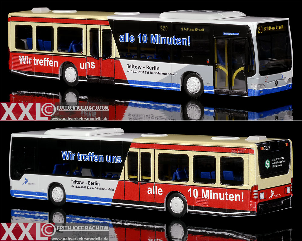Bus MB O 530 E4 (Facelift) Havelbus Verkehrsgesellschaft mbH Potsdam Hersteller: Rietze #66404 Erscheinungsjahr: 01/2012 Maßstab 1:87 (H0) Ziel: "620 S Teltow Stadt" Werbung: "Wir treffen uns alle 10 Minuten" Kennzeichendruck: - Wagen 3529 Original-Vorbild: MB O 530 Citaro Ü E4 mit orangefarbener LED-Zielanzeige XXL-Foto >> |