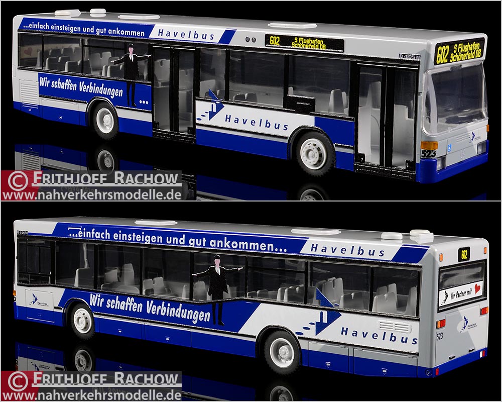 Eindecker MB O 405 N2 Havelbus Verkehrsgesellschaft mbH Potsdam Hersteller: Kembel #K81168 Maßstab 1:87 (H0) Ziel: "631 Havelbus" |