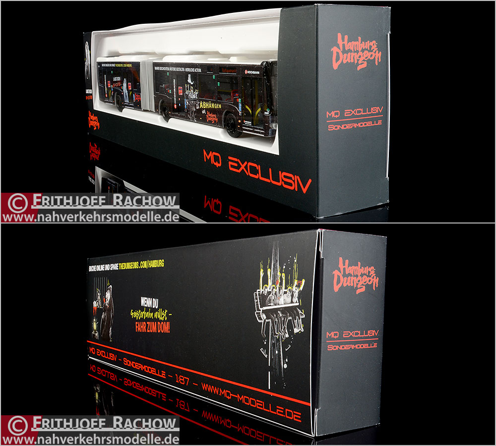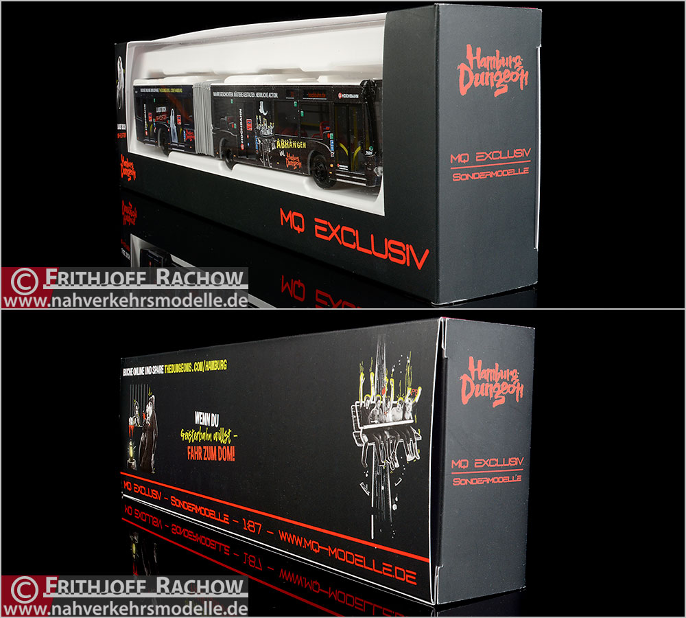 Bus Mercedes-Benz Citaro G '15 viertürig Hamburger Hochbahn AG - HHA Sondermodell Hersteller: Rietze GmbH & Co. KG #73653 Auslieferung: 07/2019 Maßstab 1:87 (H0) Ziel: "111 hochbahn.de" Werbung: "Hamburg Dungeon" Kennzeichendruck: "HH - BY 1680" Wagen 7620 XXL-Foto >> Sonderverpackung >> |